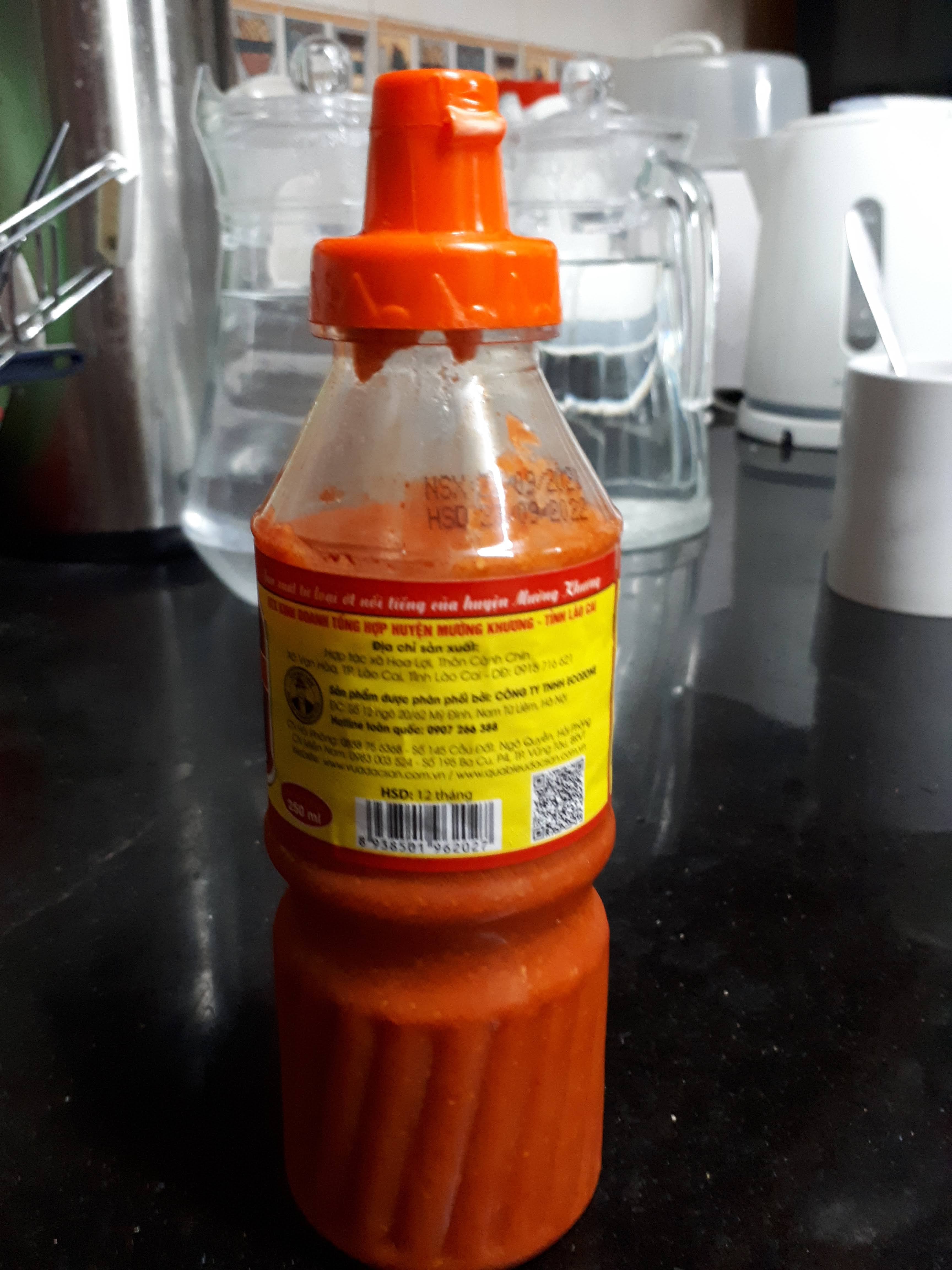 8 đánh giá Địa chỉ: thôn cánh chín,Vạn Hoà,TX.Tỉnh Lào Cai,Tỉnh Lào Cai 030000, Việt Nam Liên lạc: 0915716621tin tức trên bao bì đầy đủ, rõ ràng. Hạn sử dụng 12 tháng. Màu đẹp. Ăn ngon. Giá đắt hơn nhiều chủng loại tương ớt khác, nhưng cũng đáng để ai thích ăn cay trải nghiệm.