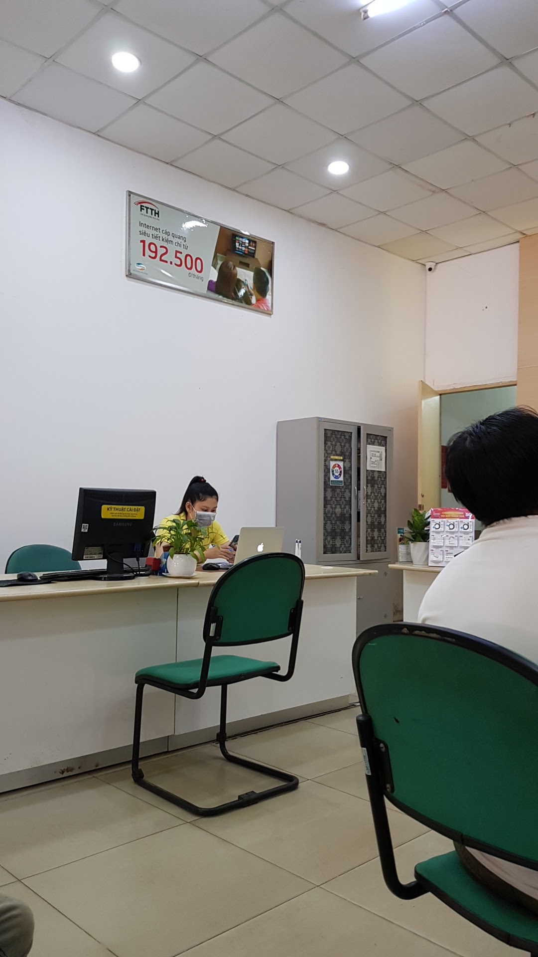 Ngày thứ 7 buổi sáng mà nhân viên cấp dưới chuyên về Sim chỉ có một người, khách thì đợi chẳng bốc số. Còn 3 người ngồi dãy bàn khác ngồi không chẳng đả động tay chân, trong khi trước Laptop dán chữ kỹ thuật setup