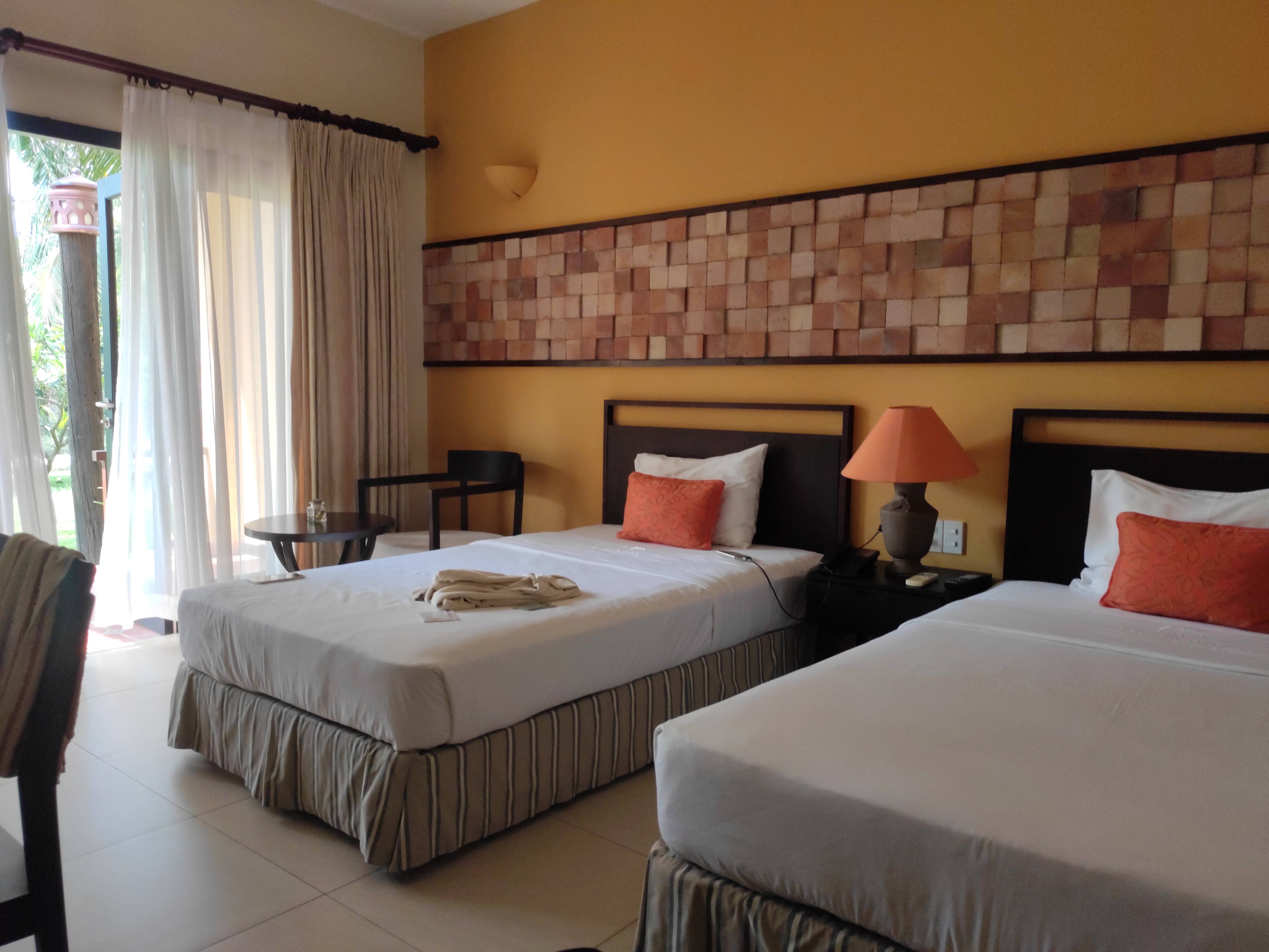 Không gian khu vườn và hồ bơi view biển khá đẹp. Nhân viên thân thiện. Nội thất khu building khá cũ do xây đã lâu và không được tái tạo, tăng cấp. Phòng rộng rãi và đơn giản. Điều khiến không hài lòng là thiết kế vị trí máy lạnh không khoa học, nằm khuất trong 1 góc trên cửa ra vào trong khi giường nằm thì lệch hẳn sang 1 bên nên không mát do máy lạnh thổi trật lất, nó chỉ thổi mát cho cái tủ quần áo, còn vị trí giường ngủ thì không. 1 vấn đề khác là cách âm quá kém, hầu như nghe rõ mồn một âm thanh bên phía ngoài và phòng bên. Thêm nữa là cánh cửa phòng làm được làm bằng gỗ có kính, nhưng không còn rèm, tuy nhiên là kính mờ nhưng vẫn không đảm bảo riêng tư khi bên trong mở đèn thì bên phía ngoài vẫn hoàn toàn có thể nhìn thấy những hoạt động và sinh hoạt giải trí sinh hoạt bên trong của hành khách. Tóm lại, ngoại cảnh đủ tiêu chuẩn 3 sao. Nội thất chỉ tương xứng khách sạn 2 sao.